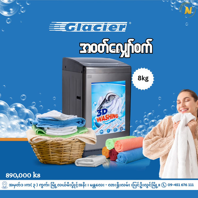 ဖြူဖွေး သန့်ရှင်းတောက်ပြောင်တဲ့ အဝတ်အထည်တွေကို အချိန်ကုန် လူပင်ပန်းသက်သာ အောင် လျှော်ဖို့ အတွက်ဆို ...အဝတ်လျှော်စက် ကောင်းကောင်းလေး တစ်လုံးတော့ ရှိထားသင့်ပါတယ်နော် ...အဝတ်အထည်တွေသာမက အိပ်ရာခင်းတွေကိုပါ လျှော်ပေးနိုင်မှာ ဖြစ်ပြီး ...ရေကိုပြောင်စင်အောင် ညစ်ပေးနိုင်မှာလည်း ဖြစ်လို့ ...အဝတ်အထည်တွေကို လျင်လျင် မြန်မြန်နဲ့ခြောက်သွေ့ စေနိုင်မှာ ဖြစ်လို့ ...အဝတ်လျှော်စက် ဝယ်ယူဖို့ စဉ်းစားနေပြီဆို N-STAR မှာ Glacier အဝတ်လျှော်စက်လေးကိုသာ ရွေးချယ် ဝယ်ယူထားလိုက်ဖို့ သတင်းကောင်းလေး ပါးလိုက်ပါရစေ